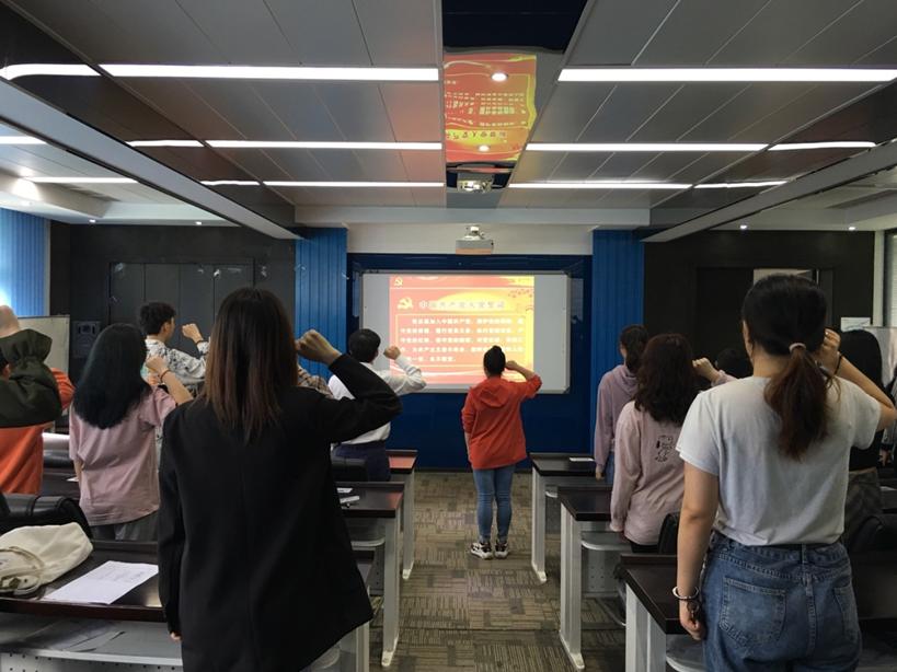会议分为两个阶段,第一阶段由太阳成集团tyc122cc学生第三党支部书记孔好为老师带领全体与会党员重温了入党誓词。
