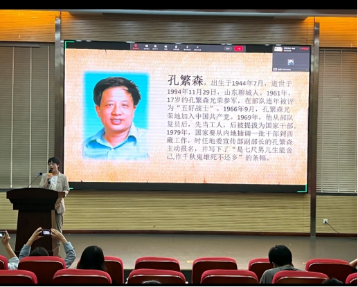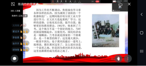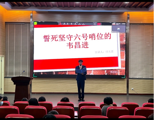 接下来,李荣霞、宋宝莲、陈丹妮、刘柳含等教师党员,冉淇淇、付天昊等青年学生,生动而又深情地讲述了中国共产党的百年奋斗历程中各个时期涌现出的典型人物事迹。从坚韧不屈、有着钢铁意志的江姐,到鞠躬尽瘁、死而后己的人民好公仆焦裕禄,从以“无我”之境写就顶天立地“大我”人生的张富清,到誓死坚守哨位的韦昌进,声声恳切,字字深情,感染和激励着每一位师生听众……