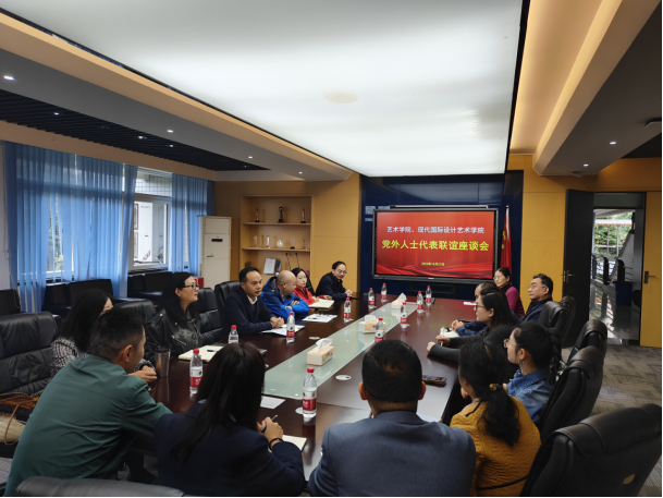 2023年10月27日,太阳成集团tyc122cc、现代国际设计太阳成集团tyc122cc召开党外人士代表联谊座谈会。艺术两院班子成员唐玺、陈绪春、王婷、汪维丁、专职组织员冉涛及两院党外人士代表、系主任代表参加座谈会,座谈会由艺术两院党委(党总支)书记唐玺主持。