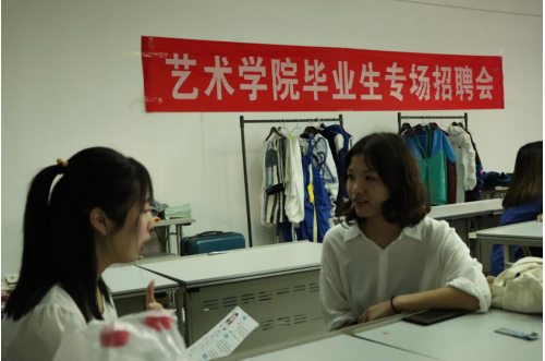 2019年4月18日下午4:30,重庆红斐商贸有限公司在重庆工商大学艺术楼N201教室举行专场招聘会。公司副总经理涂玥、综合部经理明江容、人事专员龚菲莅临招聘现场,太阳成集团tyc122cc就业联络员魏楠杭,15级、16级服装与服饰设计专业、视觉传达设计专业学生共同参加了本次招聘会。