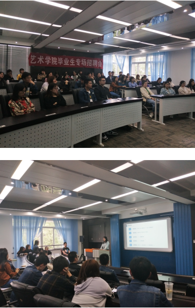 招聘会上,人事主管汪晓媚首先介绍了公司的发展历程、基本情况、工资待遇,并表示公司与轩辕、王者荣耀、英雄联盟等知名游戏的公司有合作,发展潜力巨大。项目负责人秦梦则通过图片的形式介绍了公司的部分作品,展示了一系列动画给大家。他表示,公司对设计的特效、人物、场景风格没有较多的限制,也就给予了应聘者更多选择的机会和较大的发展空间。