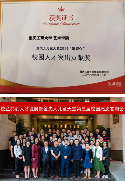 我院荣获金夫人儿童天堂颁发的2019“璀璨心”校园人才突出贡献奖,我院2018-2019年度上半年有18位同学前往该单位实习,主要从事摄影师助理、数码设计师、微电影摄影师、微电影后期剪辑等相关专业工作。汪维丁副院长荣获金夫人儿童天堂年度卓越人才贡献奖,吴轩老师被金夫人儿童天堂特聘为荣誉讲师。