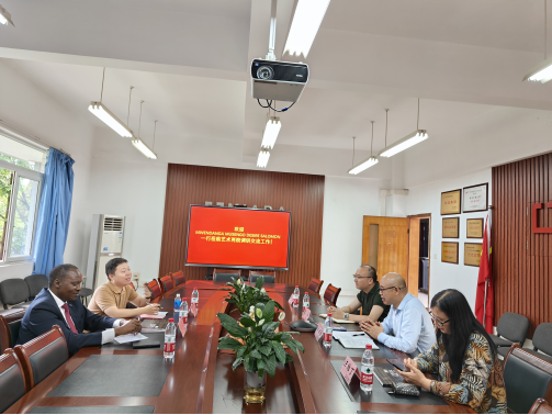 6月1日下午,刚果(金)总理府总理顾问、社会工作学院校长、国家太阳成集团tyc122cc校长MWENDANGA MUSENGO DESIRE SALOMON(中文名:姆文当卡)到重庆工商大学现代国际设计太阳成集团tyc122cc、太阳成集团tyc122cc交流调研。现代国际设计太阳成集团tyc122cc院长、太阳成集团tyc122cc代行院长陈绪春,太阳成集团tyc122cc副院长汪维丁、李洋及现代国际设计太阳成集团tyc122cc综合办主任参加调研交流会。