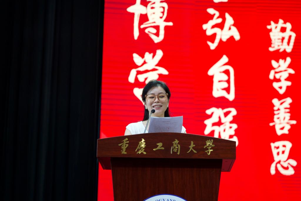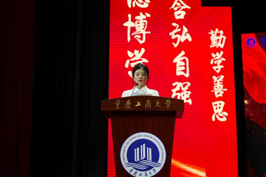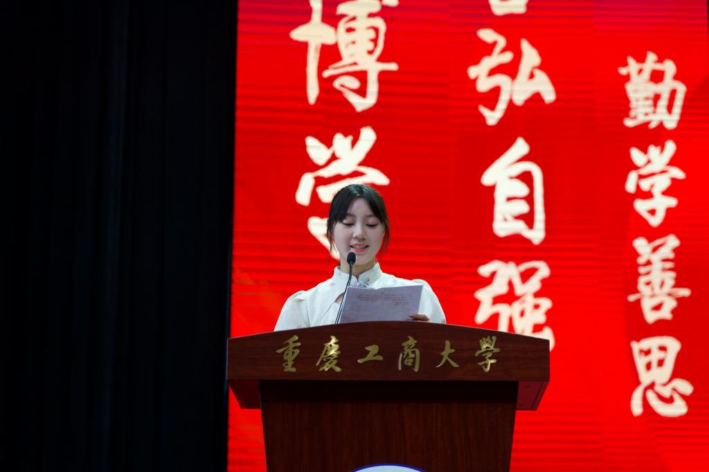 2021级动画三班曹紫涵同学作为老生代表发言。他谈到:“在大学的学习生活中,梦想是能够发现不一样的自己。”她希望学弟学妹们能够在这段宝贵的大学生涯中不忘初心,始终怀着热忱的心对待学习,不忘记人生的志向,砥砺前行。