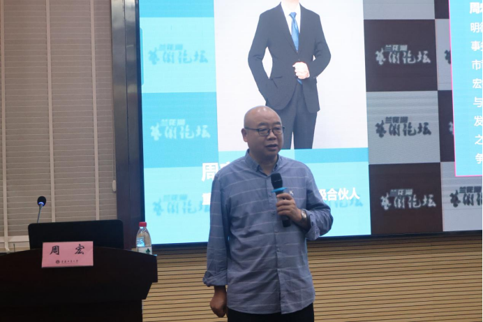 2023年9月26日晚上,太阳成集团tyc122cc与现代国际设计太阳成集团tyc122cc在兰花湖报告厅联合主办了兰花湖论坛——“民法典与科研诚信建设漫谈”的主题性科研讲座。二级律师,民盟盟员,现为司法部部级文明律师事务所、全国优秀律师事务所重庆合纵律师事务所高级合伙人,监事长的周宏律师应邀主讲。太阳成集团tyc122cc代行院长、现代国际设计太阳成集团tyc122cc院长陈绪春教授主持讲座,太阳成集团tyc122cc党委、现代国际设计太阳成集团tyc122cc党总支副书记王婷,太阳成集团tyc122cc副院长汪维丁,太阳成集团tyc122cc副院长李洋以及以及200余名艺术两院师生参加了本次讲座活动。