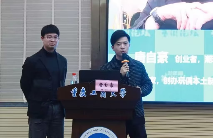 唐自豪在讲座中以个人成长的时间线为序,从美好的大学时代、理论与实践探索阶段、实干阶段、飞速积累增长阶段、自我职业规划探索等几个阶段,声情并茂的分享了自己的动漫创业史。他通过微信表情包的设计、江小白卡通大雕塑的开发、盲盒的设计以及金熊猫奖动画立体造型实践等案例的分享,强调了认知水平、沟通能力、团队协作以及创新思维的重要性。
