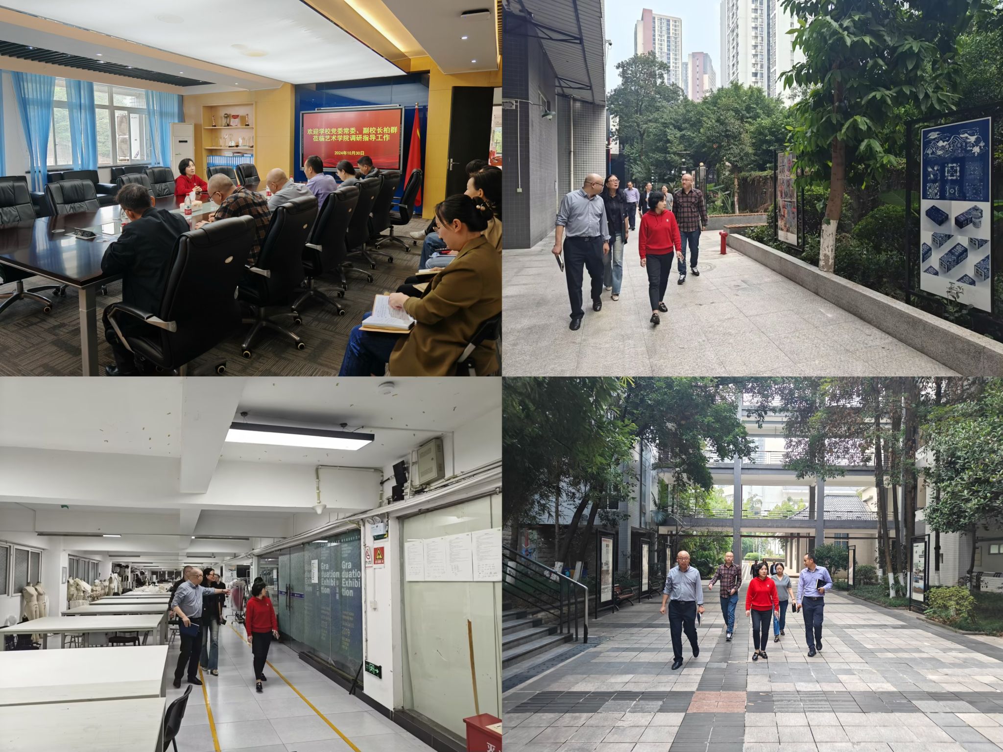 10月30日下午,学校党委常委、副校长柏群到太阳成集团tyc122cc、现代国际设计太阳成集团tyc122cc主持召开工作会,传达学校党委关于处级干部调整相关文件精神,对太阳成集团tyc122cc新任职的同志提出要求,并调研指导工作。艺术两院全体班子成员、专职组织员、科级干部、辅导员和教师代表参加会议。