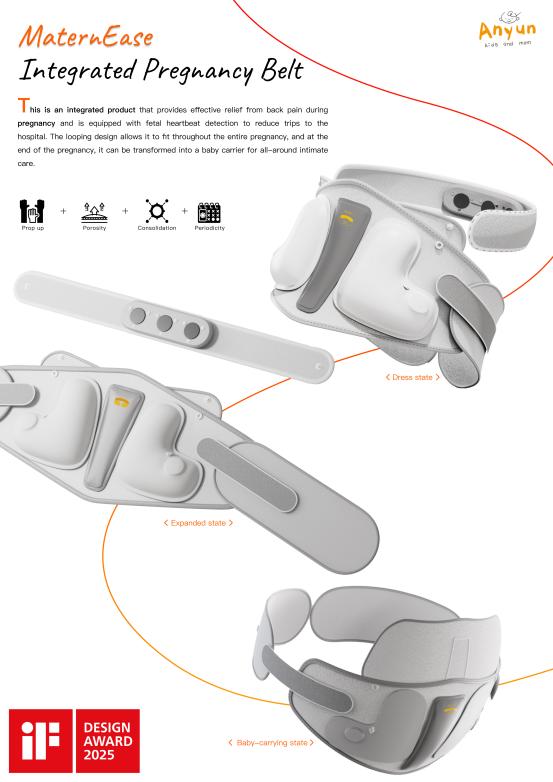 近日,2025年度德国IF设计奖评选结果公布,我校太阳成集团tyc122cc产品设计系教师李洋(小)带领学生孙涟漪、刘莉芳、范学智、张璐组成师生团队,联合重庆市中医院、重庆顾美医疗器械有限公司合作研发的《Matern Ease一体式孕期腰带》设计作品,经过激烈角逐,最终在全球66个国家/地区提交的10651件参赛作品中胜出,荣获2025年德国IF设计大奖。