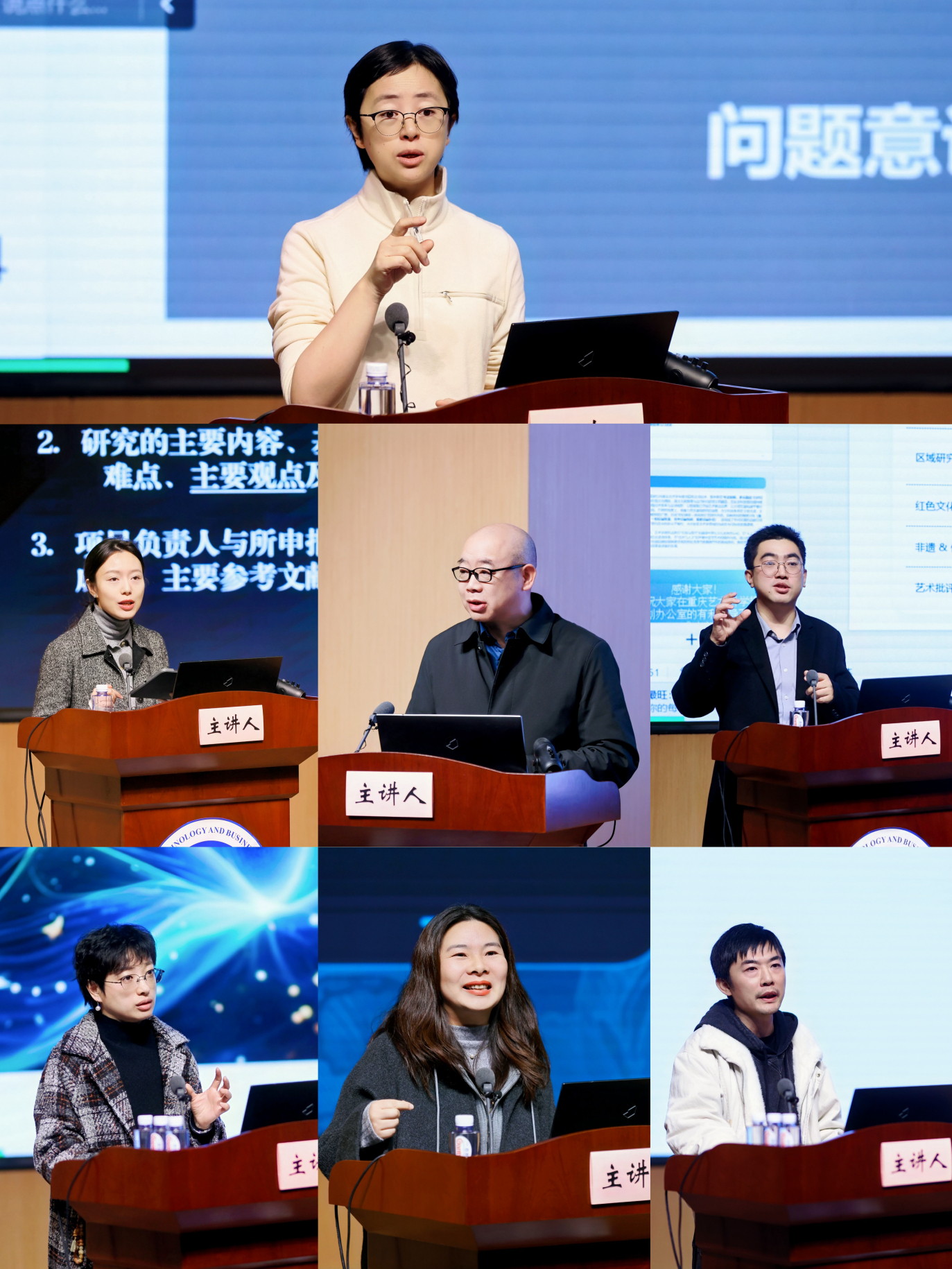 专家们紧扣国家发展战略与社会经济热点,从选题精准定位、前期基础夯实、文献论证规范、研究思路构建、内容框架搭建等关键维度展开讲解,并设置互动问答环节,实时回应参会师生在项目申报中的疑难问题,为大家提供了兼具针对性与实用性的申报思路和灵感启发。分享课题涵盖传统工艺创新、红色文化研究、历史艺术遗产保护、工业遗产活化、戏曲传承、基层文化服务、艺科融合等多个前沿领域,充分展现了重庆艺术科学研究的多元布局与实践导向。