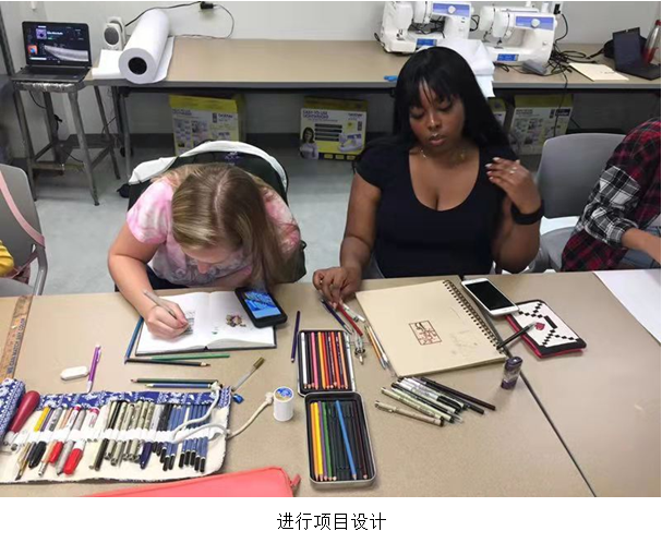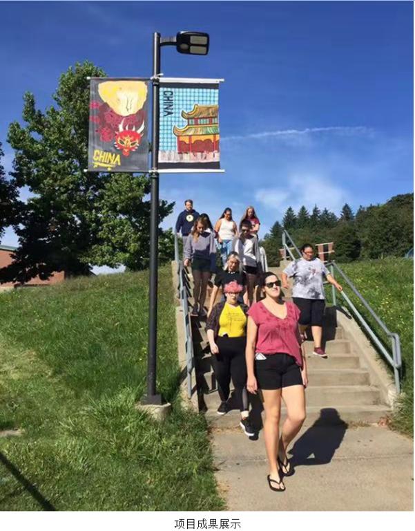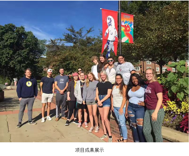 中外师生根据项目研究方向进行分组,采用视频、讨论、PPT等手段,通过线上交流方式进行设计沟通。中美方老师针对学生的设计想法进行指导,并给予学生多角度的建议,开阔思维、大胆创作。美国的学生通过图像采集、提炼,创作、制作与展示等环节,让一批具有中国元素的设计作品飘扬在美国滑石大学的校园中。滑石大学的师生们向中方的师生们进行了成果分享,表示收获满满。