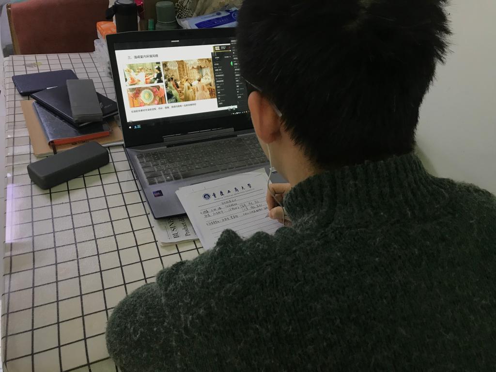 梁轩老师:环境设计是为人营造舒适空间的、美的艺术,美的事物令人愉悦,展示设计是这种愉悦的快速、精准、直观表达。艺术学科的课程跟别的专业上课会有点不一样,它需要大量的实际案例做空间优劣分析、讲解、借鉴,设计师的思想,地域间的比对等,而这些资料的更新非常迅速,有时我的脑袋里已经把此类信息跟新了,却难免在课件上无法得到全面展示,线上授课反而在一定程度上解决了这个问题。因是自身电脑,操作顺手,资料位置随手可得,加之网络的及时辅助,在知识点的讲解比课堂现场更清晰,能把东西都说透,学生的视觉也都能随着屏幕及时跟上。学校提供的1+1授课方案:网页平台结合企业微信。在经过一次集体测验解决流量拥堵问题后,上课过程中用起来也非常流畅,有意思的是在这种授课方式下,学生的积极性很高,没有了平时会出现的“冷课堂”现象。线上课堂大家互动不断,很多例如火箭头、牛、鞭炮这类带有鼓励、幽默的符号在评论区此起彼伏,大大拉近了地域间的距离,过程中有什么疑问也会实时显示,这对于我们都是非常乐意见到的,能及时调整授课。劝君须惜少年时,下次见。