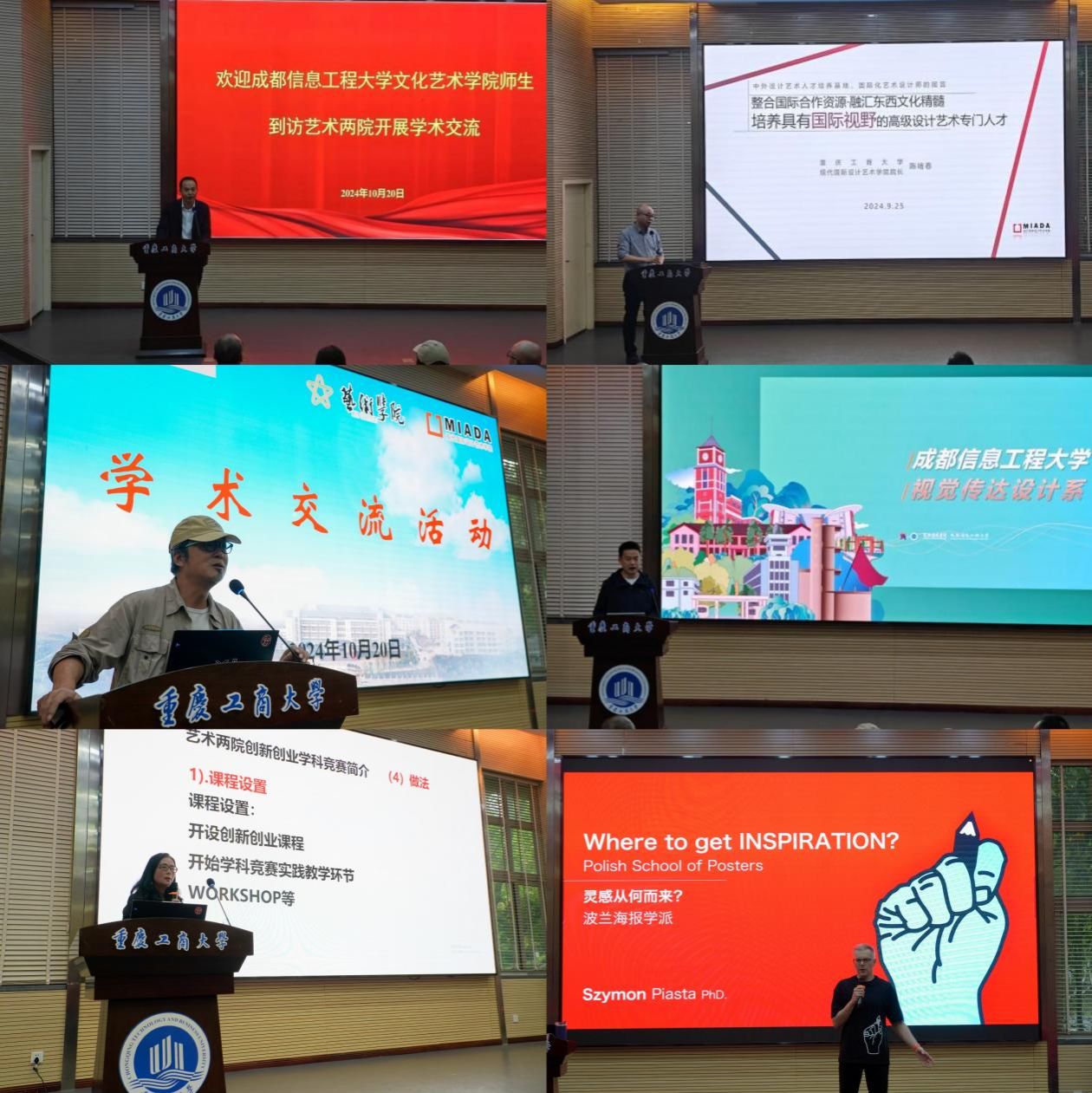 当日下午的学术交流活动由太阳成集团tyc122cc副院长李洋主持。成都信息工程大学数字媒体艺术教研室主任王文浩为师生带来了视觉传达专业优秀学生作品分享;汪维丁分享了组织各类学科竞赛的宝贵经验。现代国际设计太阳成集团tyc122cc外籍教师Szymon Piotr piasta作了主题为《波兰海报艺术发展历程》的专题讲座。学术交流活动中,学生围绕自身专业学习结合活动主题踊跃提出问题,老师们均给予详细解答,让学生受益匪浅。