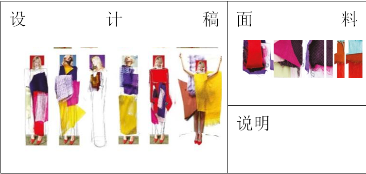 2、作品需要包含面料小样,实物粘贴或图片截图皆可。