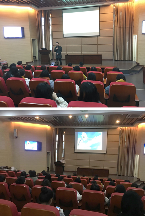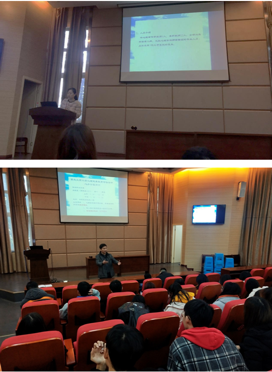 尔后,重庆工商大学大学生心理健康教育与咨询中心主任胡佳怡老师为同学们开展了心理专题讲座。胡老师讲到“其实人的心理如宇宙一样广阔、复杂,每个人的外表、生活方式看起来很相似,但同样的压力,不同心理状态的处理方法是不一样的”。胡老师首先详细介绍了我校大学生心理健康与咨询中心的人员构成和工作模式,随后,胡老师分享了常见心理问题的种类和症状,举例分析了每一种病症的主要表现、成因以及治疗方法,并着重对当今多发的抑郁症进行了详细讲述,胡老师多次强调,心理疾病不能拖,越早治疗越好。胡老师还向与会的同学们们传授了调整自身抑郁状态的小方法,比如多做运动、多晒太阳会减少心情低落的情况发生,在遇到事情的时候改变自己的思维方式,退一步,换个角度看问题,就会“柳暗花明又一村”,在本以为会孑然一身的地方,不要绝望,我们与全世界在一起。