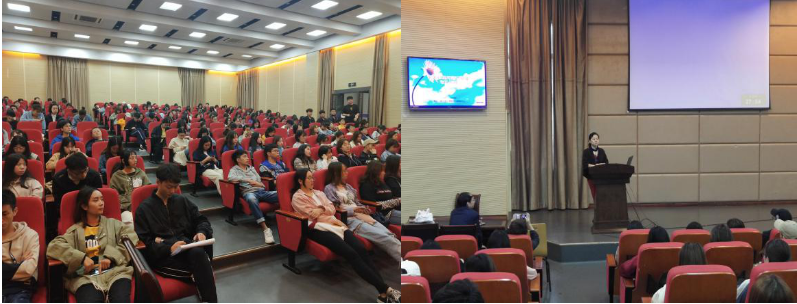 最后,心理健康教育与咨询中心副主任胡佳怡老师为同学们开展了心理健康知识讲座。胡老师通过近年来心理咨询直线上升的事实告诉同学们心理健康教育迫在眉睫,呼吁同学们关注自己和周围人的心理健康,防患于未然。随后,胡老师重点向同学们讲述了常见心理问题的识别与应对,最后,胡老师介绍了学校心理健康教育与咨询中心的基本情况及预约咨询的注意事项。