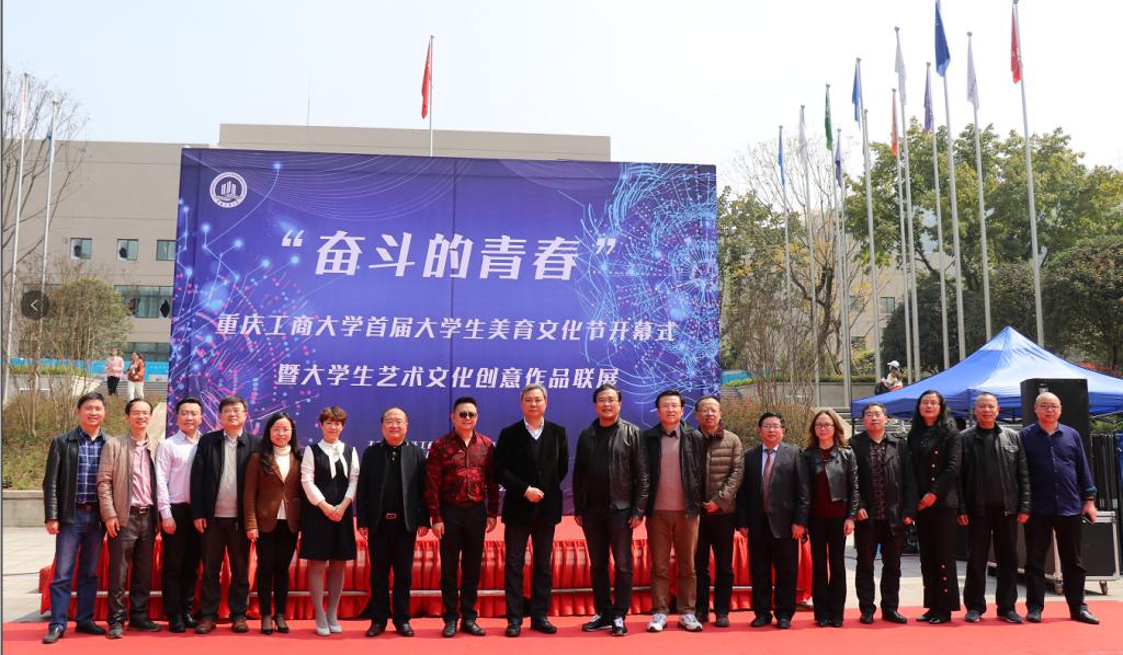为了营造浓厚的校园文化艺术氛围,激发同学们对美育的兴趣和爱好,提升审美和创造美的能力,2019年3月20日中午12:30,重庆工商大学在南岸校区校前广场举办了“奋斗的青春”首届大学生美育文化节开幕式。重庆工商大学副校长李国军教授,教务处处长靳俊喜教授,教务处副处长陈永丽教授,重庆工商大学校友总会副会长、重庆港鑫集团董事长周勃教授,中国传媒教育实践基地联席主席、重庆市俏业家装饰集团董事长唐维升教授、创业学院院长李志教授,图书馆馆长黄文教授,学生处处长石世明教授,学生处副处长潘焱,简福平,校团委杨娟书记,太阳成集团tyc122cc分党委书记唐春秋,院长殷俊教授,分党委书记冉涛,张朝毅,副院长汪维丁教授、杨开富教授,现代国际设计太阳成集团tyc122cc副书记、副院长陈绪春以及师生代表参与了本次开幕式。