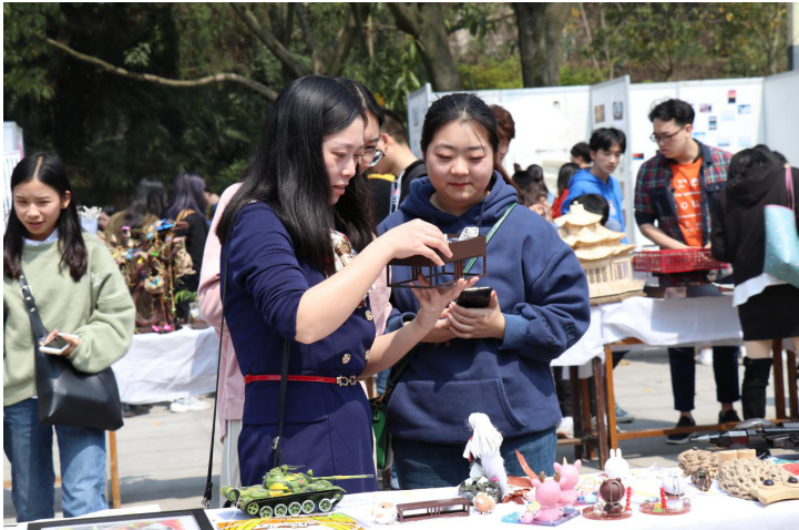 开幕式结束后,领导、老师和同学们兴趣盎然地参观了此次活动的文创作品展,积极参与互动体验,分享自己的感受,为自己心仪的作品进行了投票,用欢声笑语和美好祝福为美育文化节开幕式划上了圆满的句号。