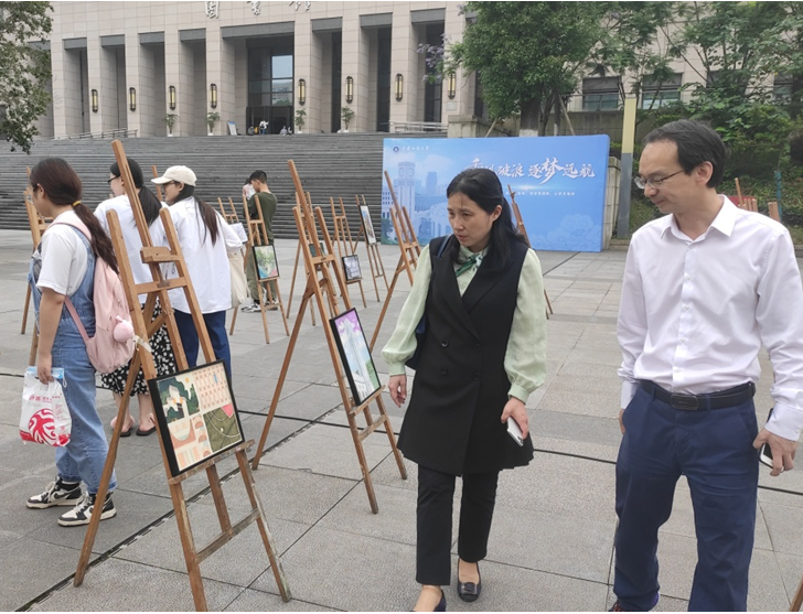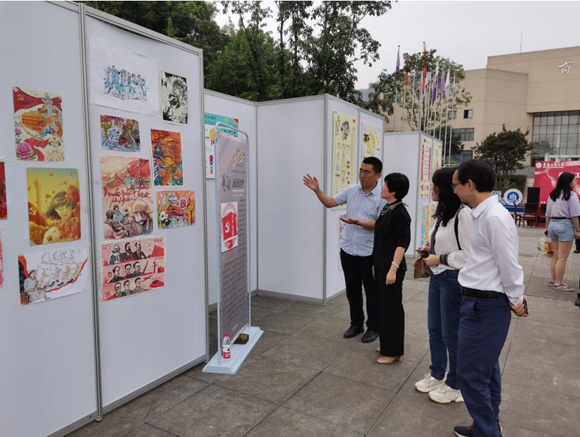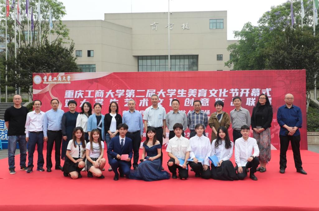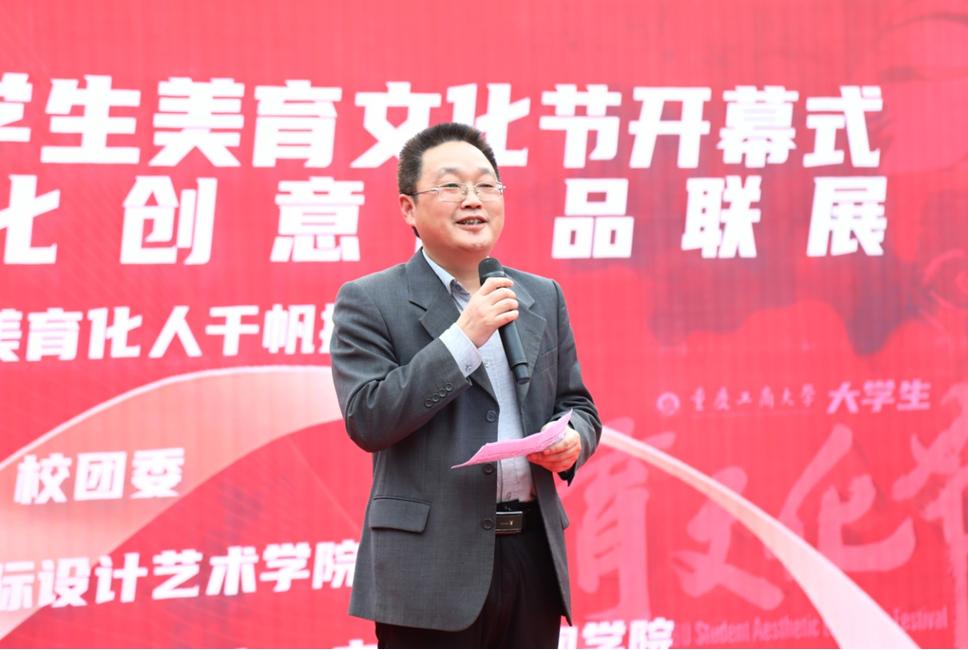 为迎接中国共产党建党100周年,深学笃用习近平总书记在全国教育大会上的重要讲话精神,培养德智体美劳全面发展的社会主义建设者和接班人,5月28日,由我校党委学工部、校团委主办,太阳成集团tyc122cc、现代国际设计太阳成集团tyc122cc承办,机械工程学院、人工智能学院协办的“青春献党百年诞,美育化人千帆扬”第二届大学生美育文化节在南岸校区含弘广场隆重开幕。学校党委常委、副校长李国军,党委组织部、党委宣传部、党委学工部、教务处、校团委等职能部门负责人,人工智能学院、数学与统计学院领导代表,太阳成集团tyc122cc、现代国际设计太阳成集团tyc122cc班子成员以及各学院师生代表参加了此次开幕式,党委副书记宋豫、副校长柏群先后莅临作品展览现场,并对美育文化节的活动进行了指导。