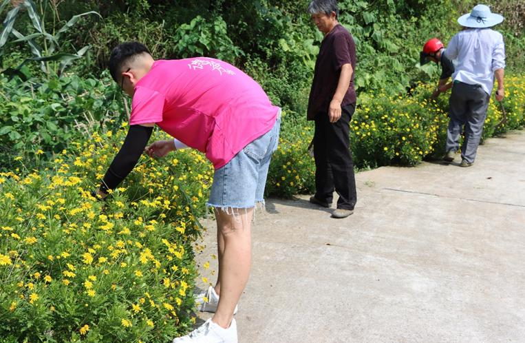在返途过程中,实践团成员们看到了酷暑下仍在辛勤劳作的当地老人,纷纷主动停下参与劳作,并协助清除了联丰村村委会旁人行道路中的杂草,展现了重庆工商大学艺术学子的良好精神风貌。