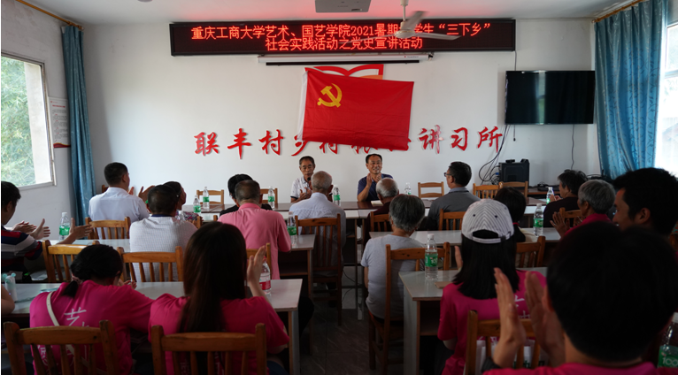 启动仪式后,实践团成员们立即奔赴联丰村乡村振兴讲习所开展了党史宣讲活动。宣讲会上,石鱼镇的在党50年老党员们与团队成员中的青年学生党员们围绕自己的入党初心、党史感悟和个人事迹进行了分享交流。