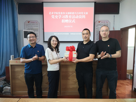 在党建结对子仪式上,太阳成集团tyc122cc党委委员、教工第一党支部书记、副院长李洋与兴合村党支部书记冯文华一起为“党建共建基地”揭牌。双方表示,将通过党建引领,以深入开展党史学习教育活动为契机,实现全方位的合作,充分发挥各自的专业与平台优势,扎实推进,探索助力乡村文化振兴新路径。李莉莎代表学院党委向“党建共建基地”捐赠了党史学习资料并对太阳成集团tyc122cc各支部参与党建共建工作提出了具体要求,兴合村党支部第一书记、驻村帮扶干部邹奇表示,将进一步挖掘高校资源,发挥基层党建共建优势,共同在乡村文化振兴和教育等方面将共建工作稳步推进,落地落实。